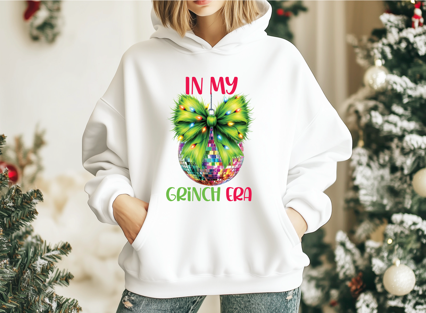 This season, embrace your festive attitude with a twist! Our exclusive "In My Grinch Era" collection is here to add a little mischief to your holiday wardrobe. Featuring a Grinch-inspired bow atop a sparkling disco ball Christmas ornament, these designs are the perfect mix of naughty and nice.