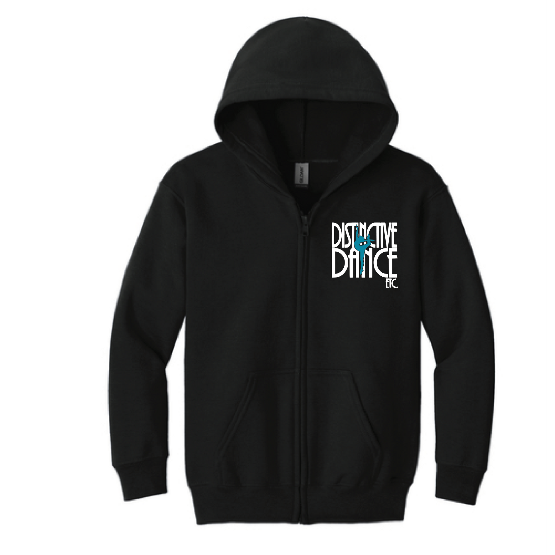Stay warm and show your studio pride in this classic black zip-up hoodie. Designed for comfort and durability, it’s perfect for everyday wear — with the option to personalize with either print or embroidery featuring the Distinctive Dance Etc logo.