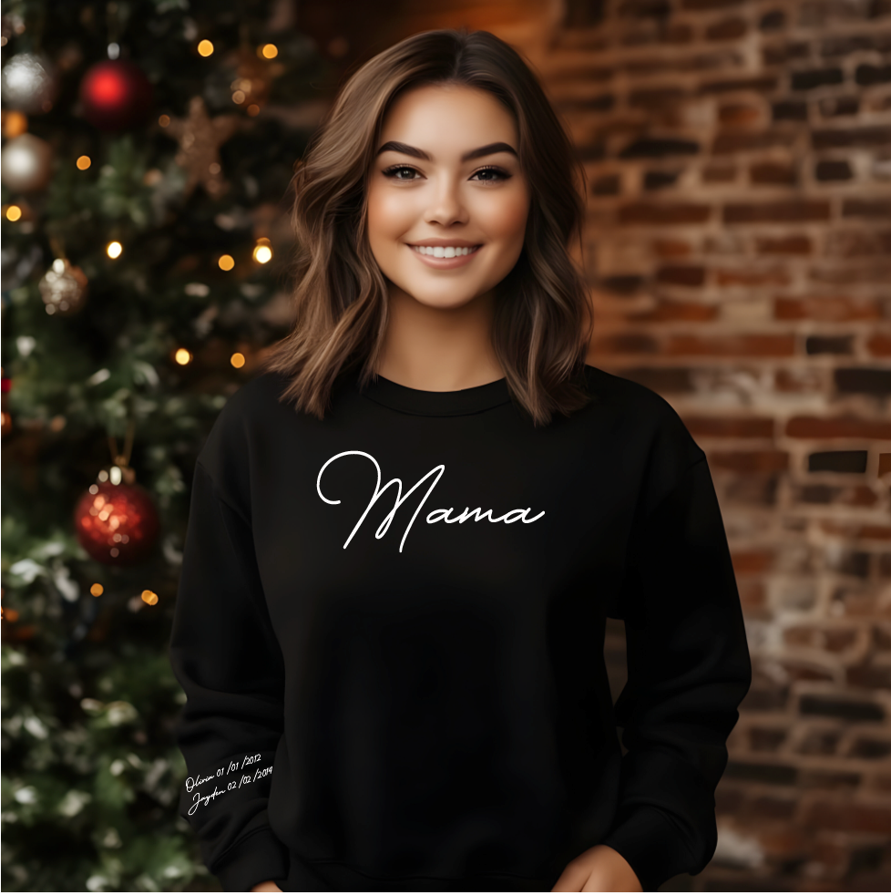 On the sleeves, you’ll find a personalized touch: the names and birthdays of your beloved kids, cats, or dogs, beautifully added for a unique flair. Choose the sweatshirt that complements your style, and enjoy the warmth and comfort of this thoughtful design, whether you’re at home, out for a walk, or hanging out with your furry family members.